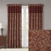 For a luxuriously classic style, our Madison Park Aubrey Window Curtain Pair is the perfect touch to your decor. The alluring jacquard weave is inspired from an updated paisley motif and is woven in beautiful hues of burnt red, gold, and a hint of platinum for a shimmering accent. The window panels are pieced with solid faux silk and beautiful flat piping details in gold, creating an elegant look. While also achieving the OEKO-TEX certification, meaning it does not contain any harmful substances or chemicals, ensuring quality comfort and wellness. Rod pocket or back tabs top finish makes this curtain easy to hang, open, and close panels throughout the day; while fitting up to a standard 1.25" diameter rod. Coordinating bedding is also available and sold separately.