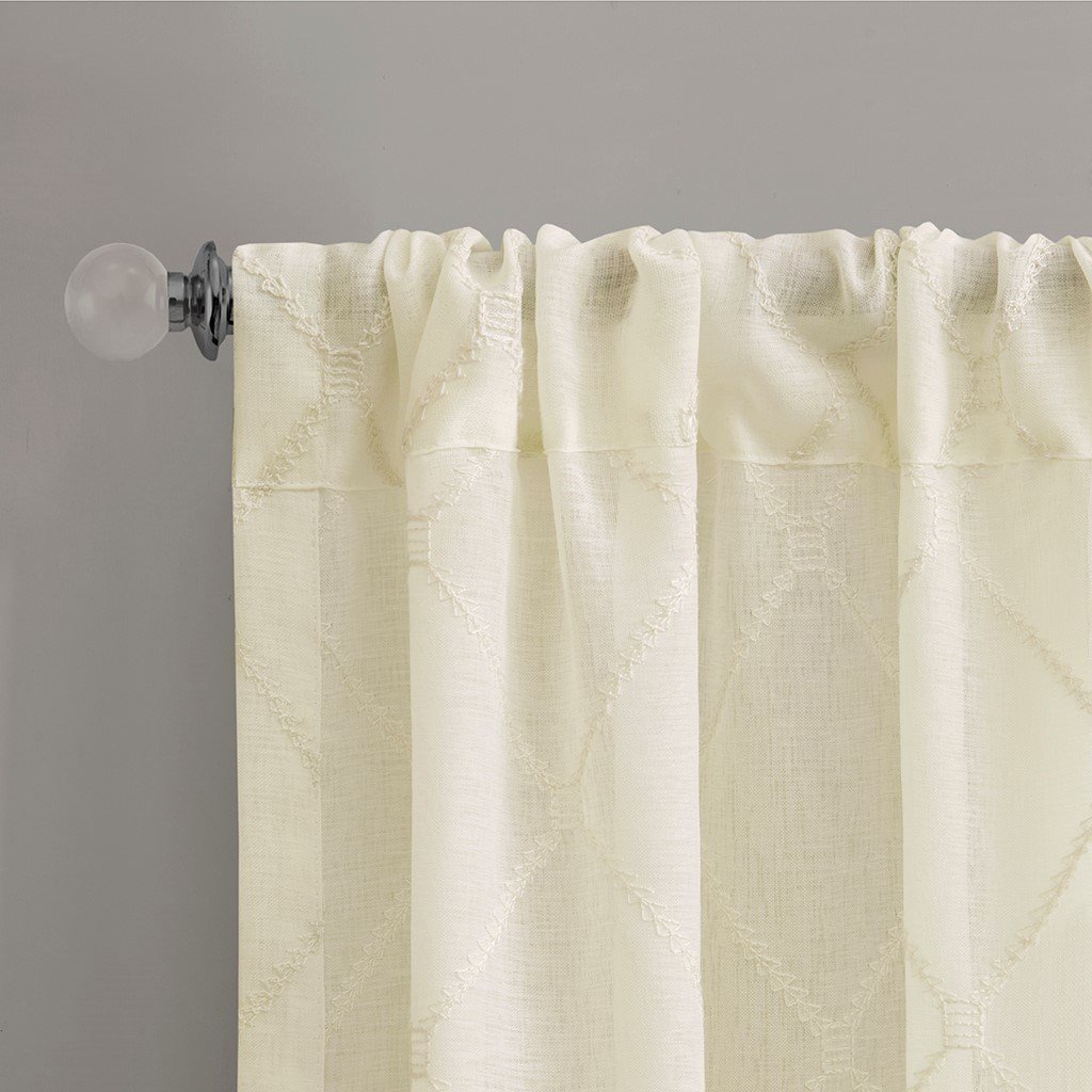 Madison Park's Irina Diamond Sheer Window Curtain provides an alluring update to your home. An elegant diamond pattern is beautifully embroidered on a soft sheer fabric, adding grace and charm to your décor. The neutral colors and light fabric helps create a delicate look to soften any room. Hang this sheer window curtain using the rod pocket for a simple finish. Fits up to a 1.25" diameter rod.