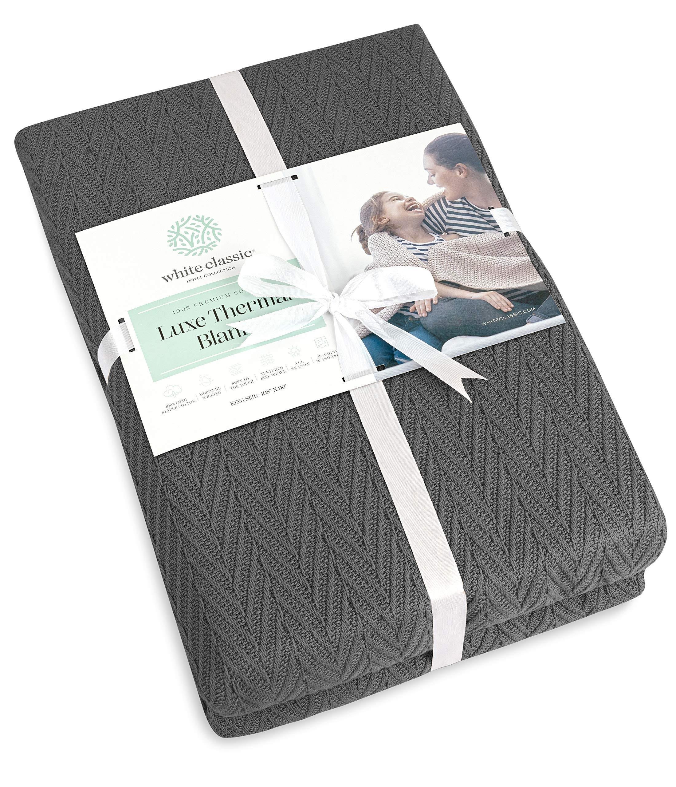 Queen Size Blanket for Bed 100% Cotton Blankets Soft and Breathable 410Gsm Waffle Lightweight Summer Blanket 90x90 Inches Dark Grey